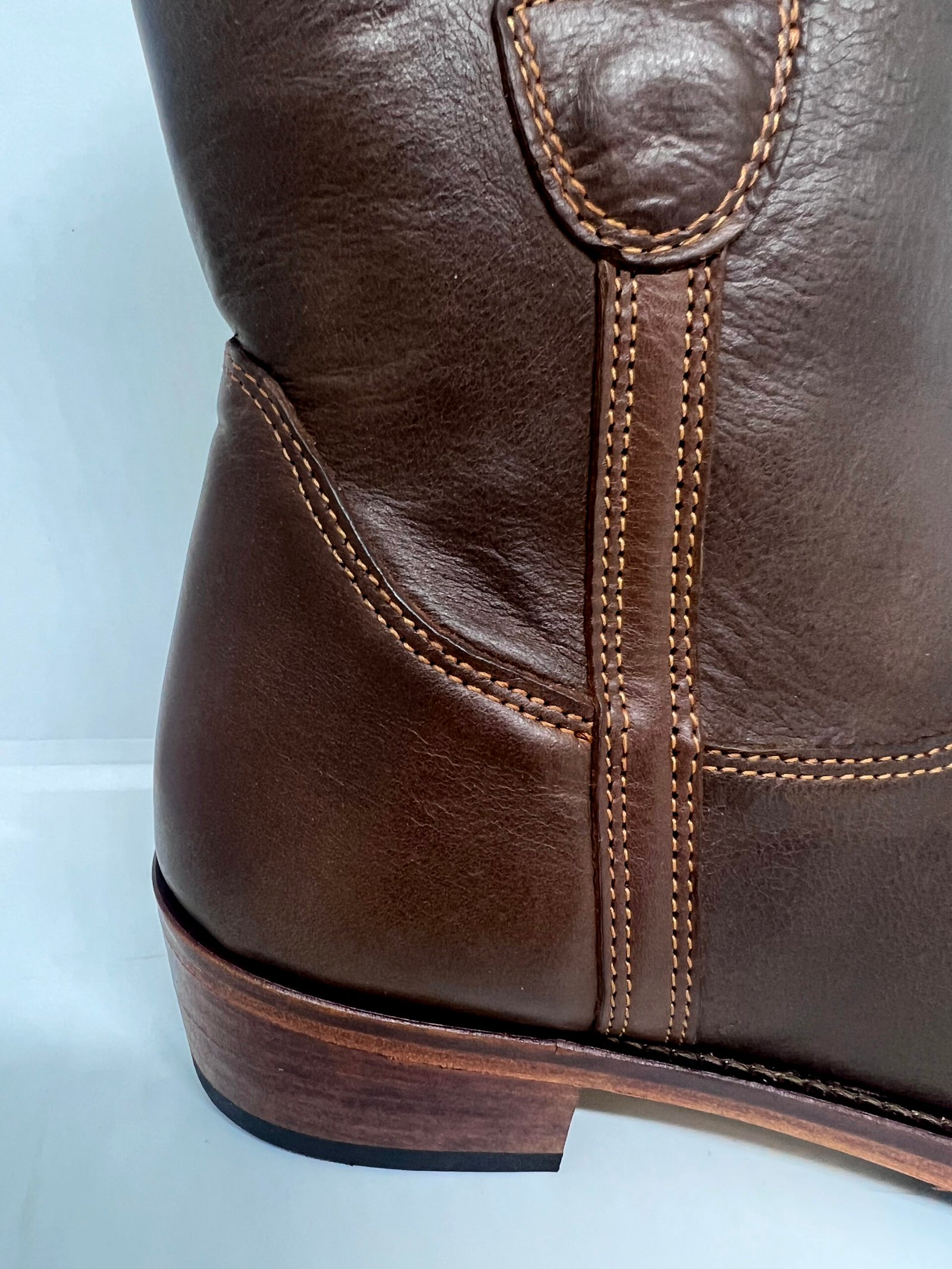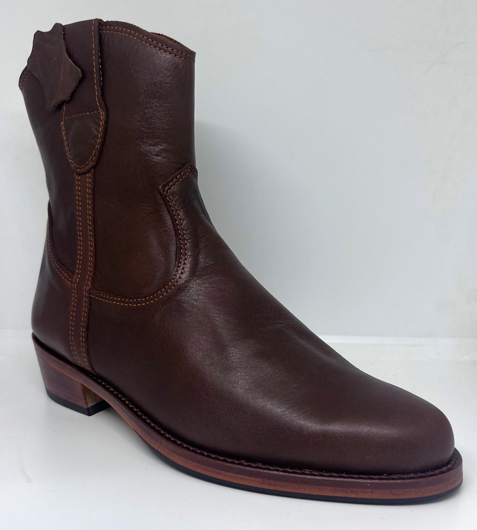 Inspirada nas linhas icónicas do estilo western, a Bota Valentim Raiz é feita à mão em pele natural, com forro em pele que garante conforto e respirabilidade. A sola em couro, reforçada com borracha antiderrapante e cosida artesanalmente, oferece estabilidade e durabilidade em qualquer terreno. Uma bota de carácter forte, pensada para pessoas que caminham com atitude e autenticidade.
